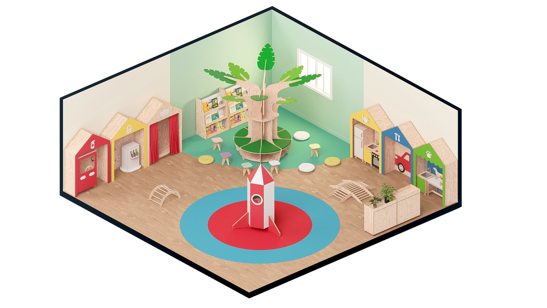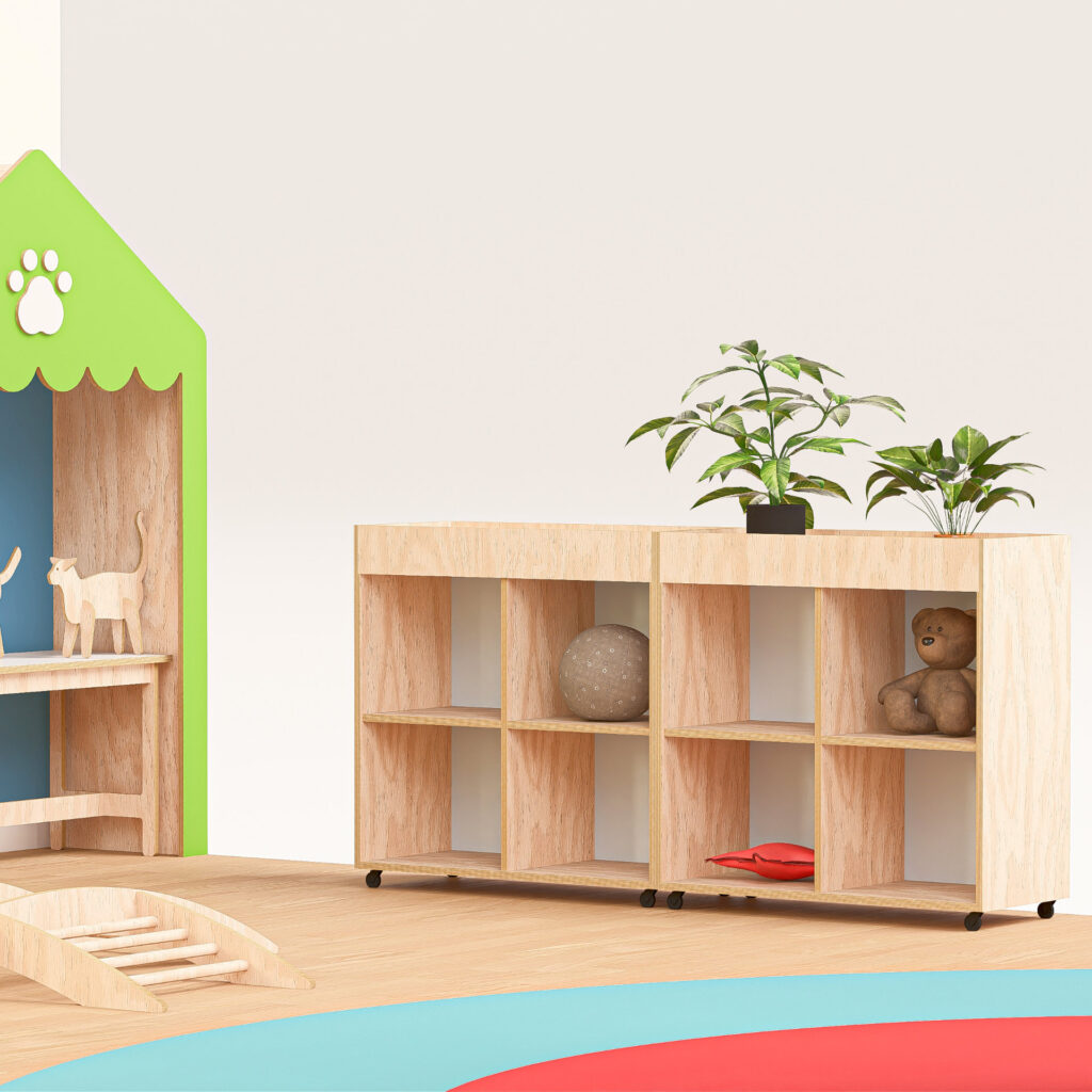 Por isso, a brinquedoteca combina mobiliários lúdicos, acessíveis e modulares, que acompanham o ritmo das crianças e acolhem diferentes brincadeiras ao longo do dia.