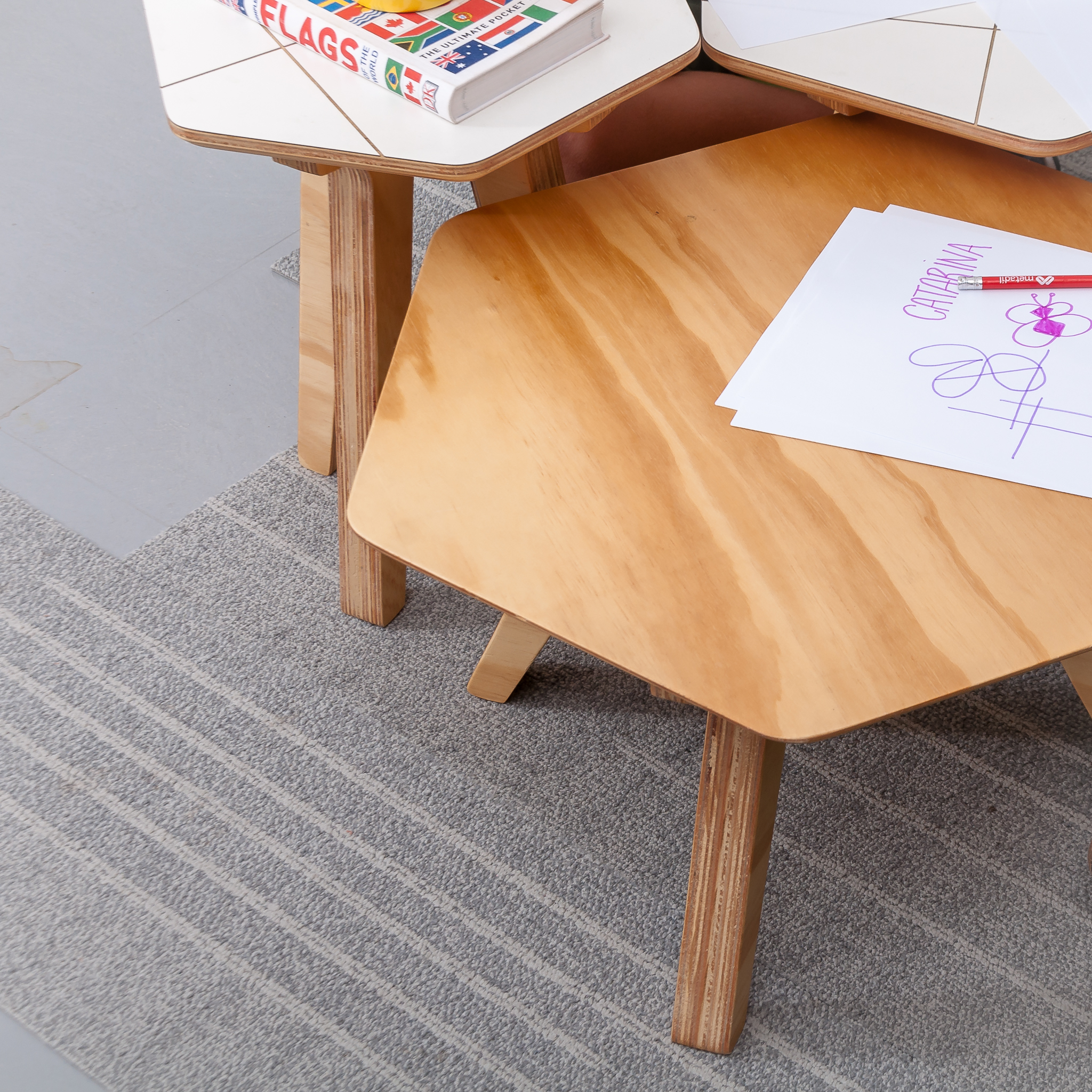 Disponível em três tamanhos, a MESA TREVO pode ser usada individualmente ou