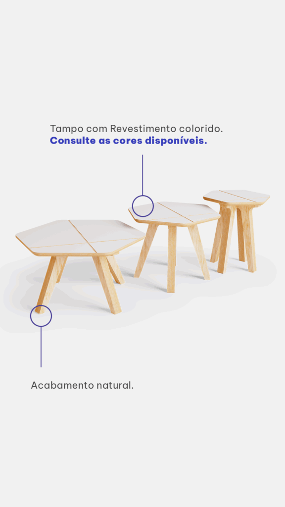 em conjunto, funcionando como mesa de centro, canto ou apoio.